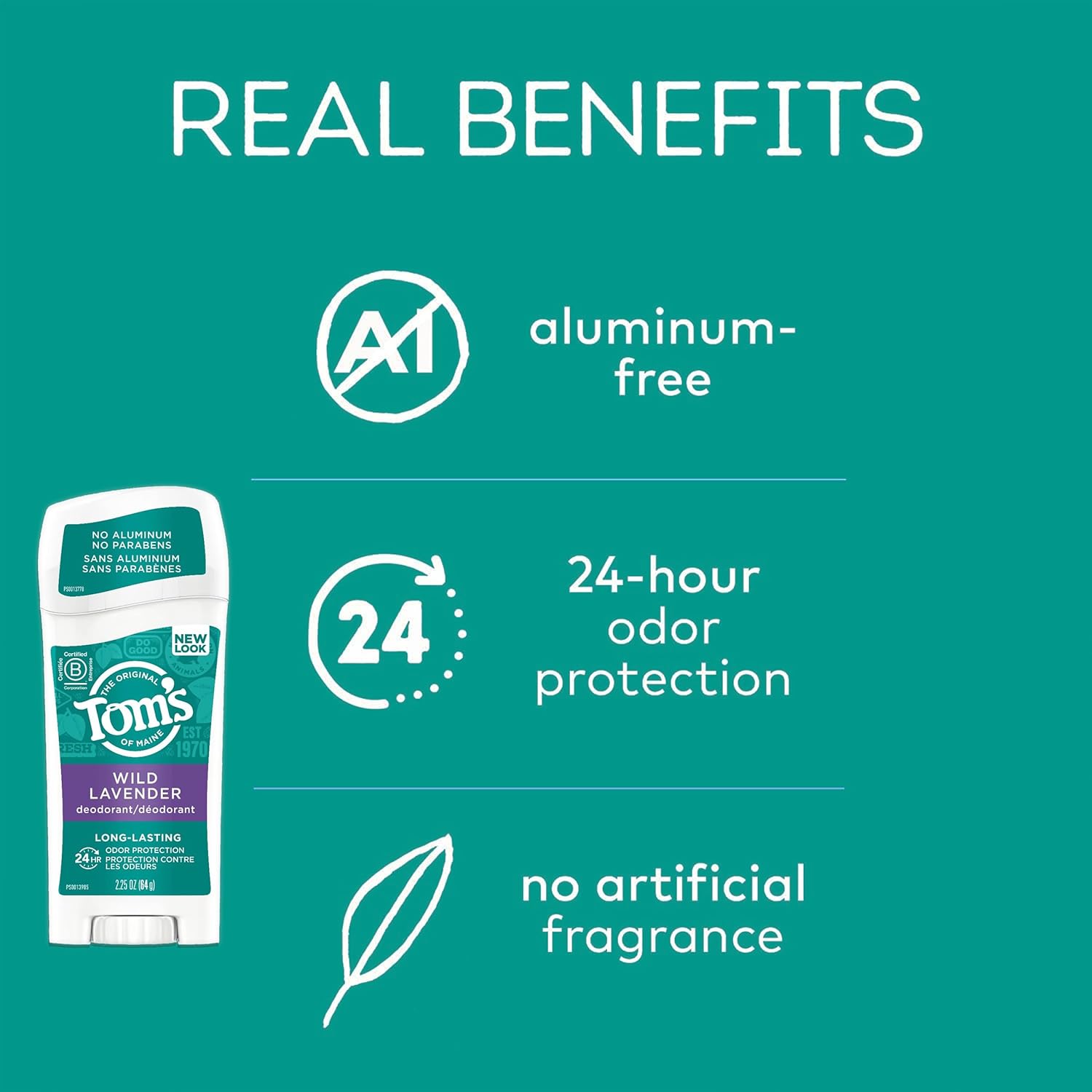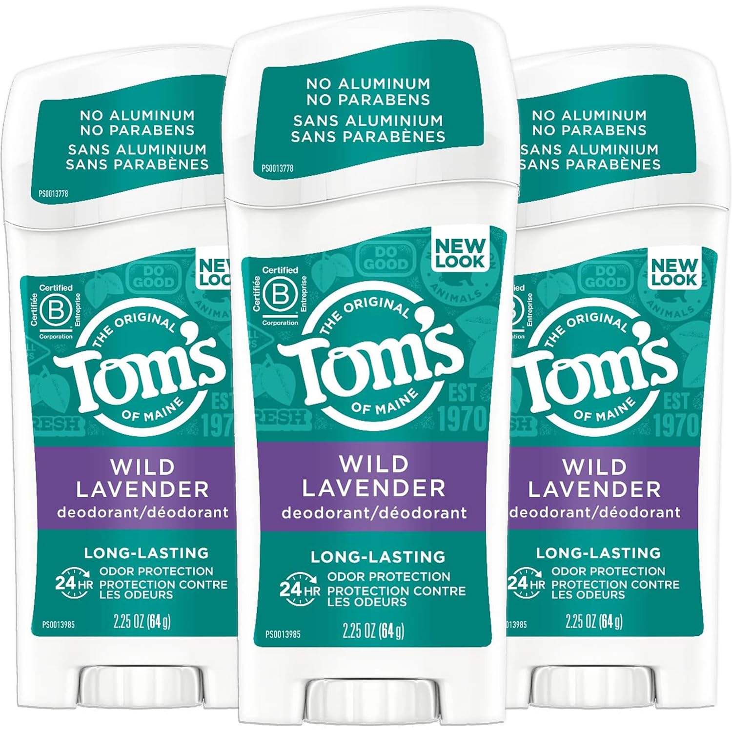 Tom's of Maine Long-Lasting Aluminum-Free Natural Deodorant for Women, Wild Lavender, 2.25 oz. 3-Pack